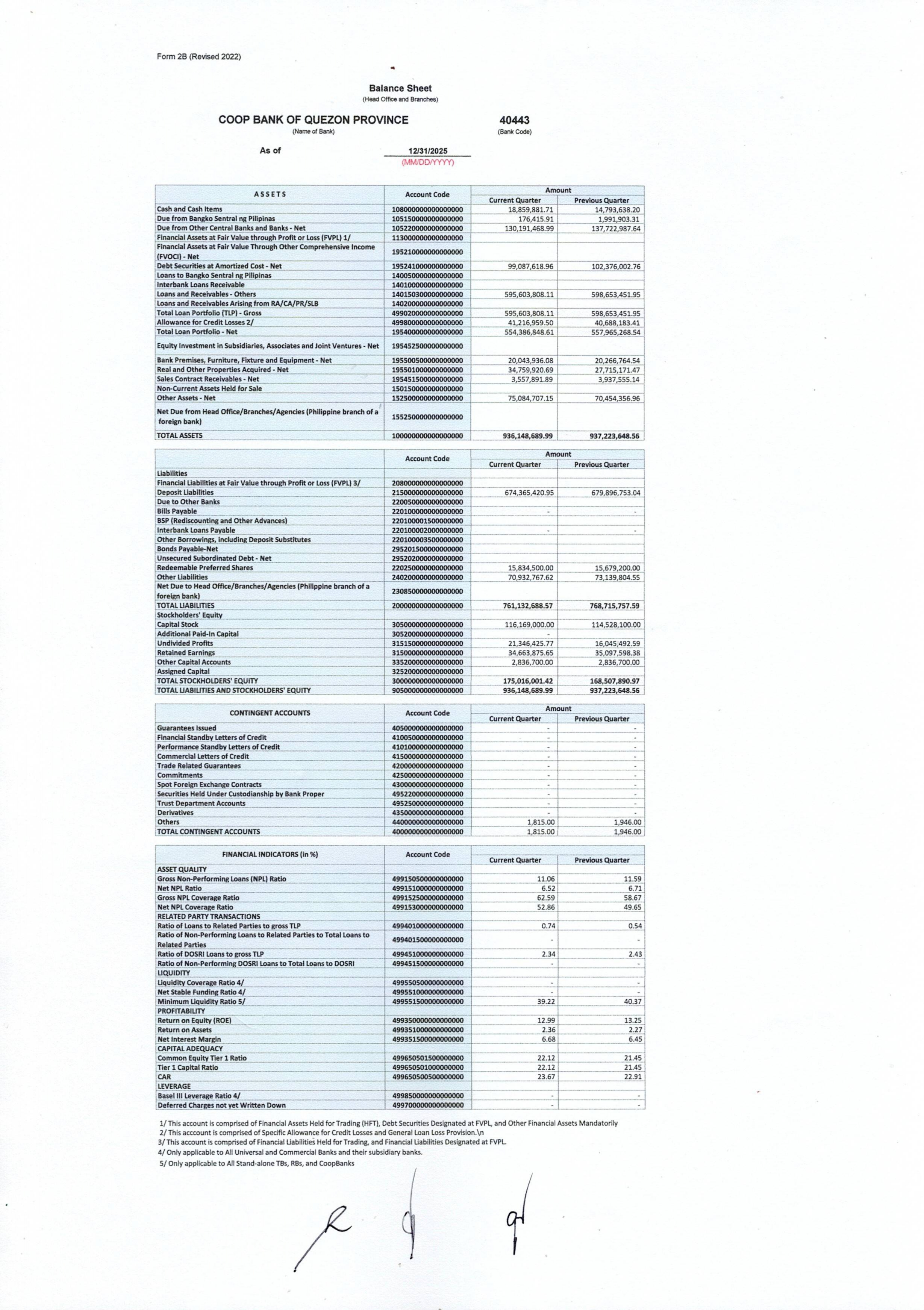 Published Balance Sheet as of December 31, 2025